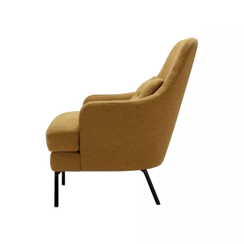 Alisson is een elegante, gestoffeerde fauteuil die schoonheid en een uitgebalanceerd design in perfecte harmonie combineert. De hoge, minimalistische metalen poten geven de volledig gestoffeerde zitting, rugleuning en armleuningen een lichte, zwevende uitstraling. Verrijkt met een extra lendenkussen biedt de fauteuil uitnodigend comfort voor lounges, lobby's, wachtruimtes, kantoren en andere horecagelegenheden. Verkrijgbaar in een breed scala aan professionele stoffen.