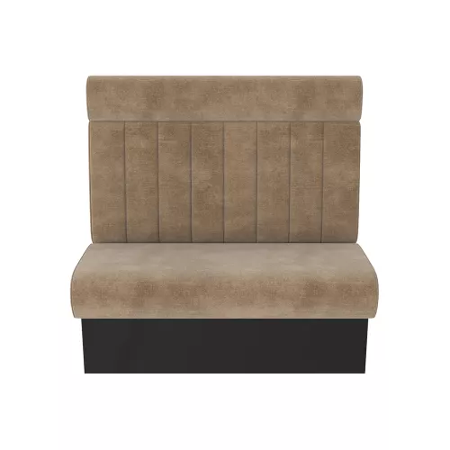 Deze gestoffeerde modulaire bank met een sokkel van spaanplaat biedt een flexibele zitoplossing voor moderne horecagelegenheden. Geïnspireerd op de klassieke Amerikaanse dinerstijl, wordt deze bank op maat gemaakt en biedt ze zowel comfort als duurzaamheid. De zitting bevat hoogwaardig schuim dat bestand is tegen intensief gebruik. Beschikbaar in een brede selectie professionele stoffen of kunstleer, met de mogelijkheid om uw eigen bekledingsmateriaal aan te leveren.