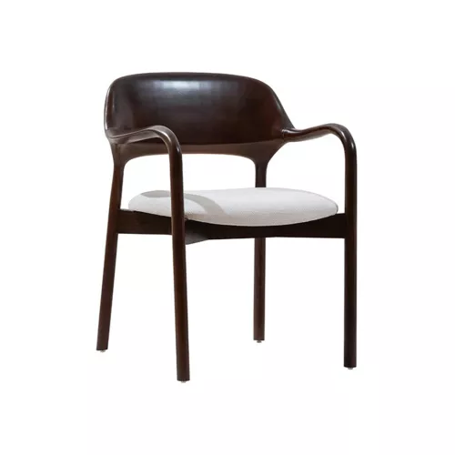 De Arven stoel combineert tijdloos design met duurzaam comfort. Het houten frame en de rugleuning worden aangevuld door een zacht gestoffeerde zitting, terwijl de ronde lijnen van de armleuningen een onderscheidende, elegante uitstraling creëren. Verkrijgbaar in een breed scala aan professionele stoffen, is Arven ideaal voor horecagelegenheden die op zoek zijn naar stijl en duurzaamheid.