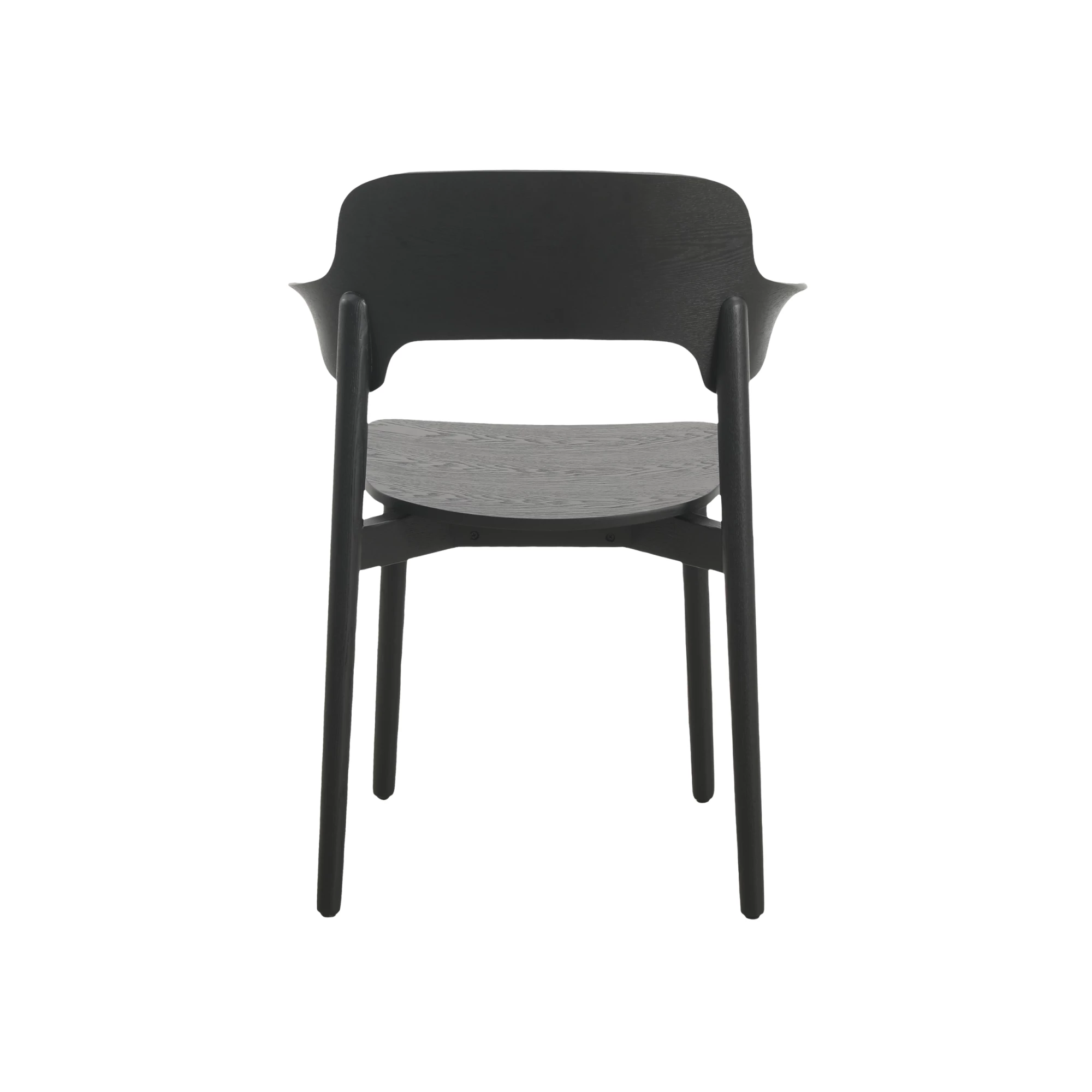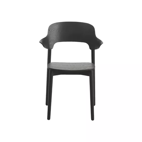 Moderne stoel van massief eikenhout met geïntegreerde armleuningen.