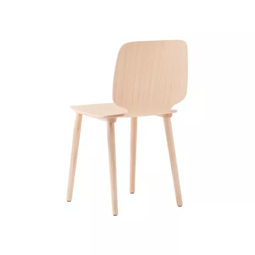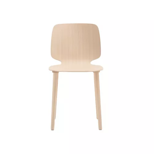 De zitting is gemaakt van essenhouten fineer met variabele dikte, wat zorgt voor een ergonomische vorm die visuele lichtheid en comfort combineert. De massief essenhouten poten bieden stevige ondersteuning en natuurlijke elegantie, waardoor de stoel geschikt is voor uiteenlopende omgevingen – van moderne eetkamers tot stijlvolle kantoorruimtes.