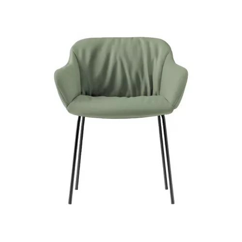 Babila XL 2733R combineert traditie en innovatie in een harmonieus ontwerp. De fauteuil heeft een ruime zitting en armleuningen, met een gegoten schaal van volledig gerecycled polypropyleen – 50% afkomstig van consumentenafval en 50% van industrieel afval. De schaal is versterkt met glasvezel, antistatisch en UV-bestendig. Het stalen buisframe (Ø16 mm) biedt stevigheid en duurzaamheid. De afneembare, beklede hoes is gevuld met flexibel polyurethaanschuim met hoge dichtheid (65 kg/m³), is brandvertragend (klasse 1 IM) en eenvoudig schoon te maken of los te halen. De binnenzijde is antislip en donkergrijs van kleur.