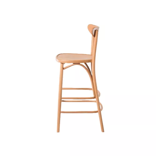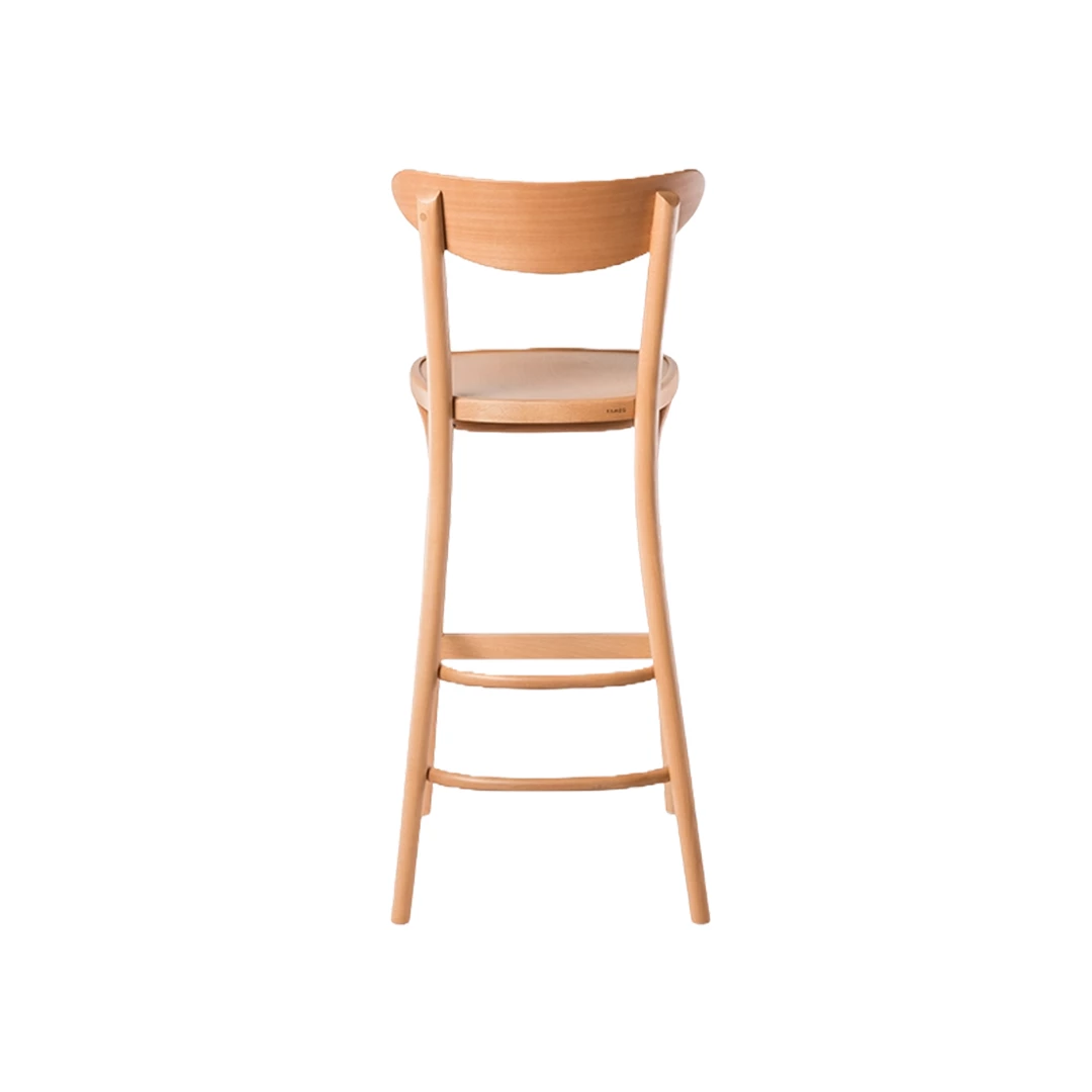 De Banana BK houten barkruk toont tijdloos vakmanschap door traditioneel buigen van beukenhout. Het massief beukenhouten frame en de houten voetensteun garanderen duurzaamheid en comfort, terwijl de natuurlijke rondingen hem een verfijnde, klassieke uitstraling geven. Verkrijgbaar in diverse houtbeitskleuren, ideaal voor bars, bistro's en horecagelegenheden.