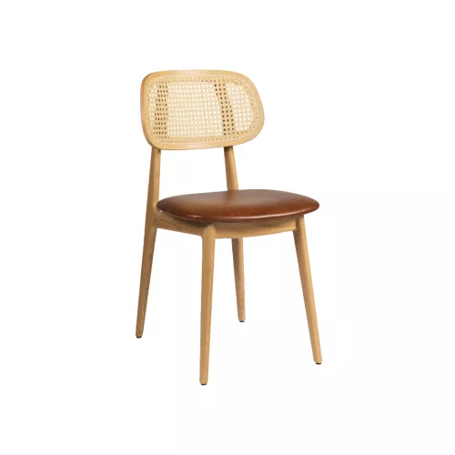 Beneton PS is een stijlvolle stoel met eikenhouten frame, gestoffeerde zitting en gevlochten rug. Ontworpen voor professioneel gebruik en verkrijgbaar in een breed scala aan stoffen of kunstleer.