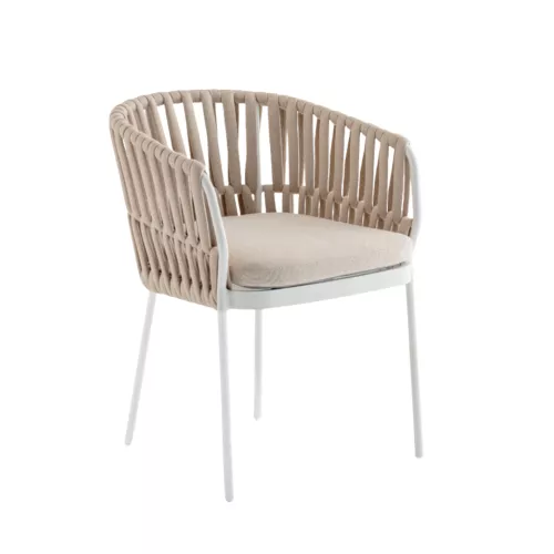 Boho is een stevige en stijlvolle buitenstoel met armleuningen, gemaakt van aluminium en bekleed met acrylkoord. De gestoffeerde Olefin-kussen zorgt voor comfort. Stapelbaar en geschikt voor elke horecaterras.