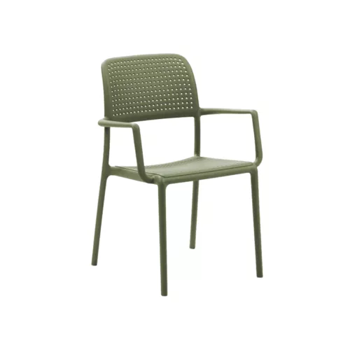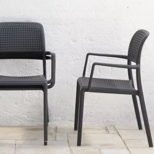Bora is een lichtgewicht, duurzame terrasstoel van recyclebaar polypropyleen met UV-bescherming. Dankzij de monoblocstructuur en armleuningen biedt hij comfort en stabiliteit. De stoel is stapelbaar, verkrijgbaar in meerdere kleuren, en perfect voor horeca buitentoepassingen. Praktisch en stijlvol tegelijk.