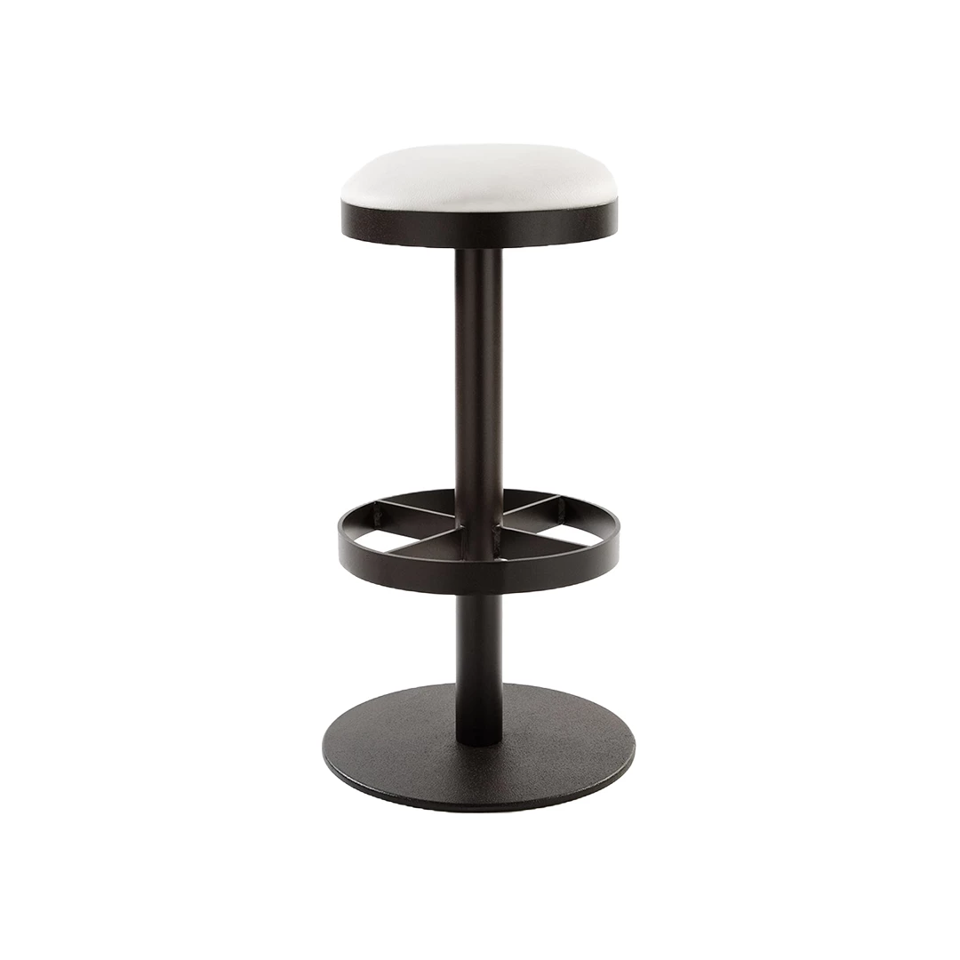 Borg is een stevige barkruk van gelakt ijzer, ontworpen voor intensief gebruik en een moderne uitstraling. De ronde basis van Ø40 cm en de zithoogte van 80 cm bieden comfort, met een vast of draaibaar gestoffeerd zitvlak. Met 18 kg is hij bijzonder stabiel – perfect voor bars, restaurants en andere horecagelegenheden met een industrieel karakter.