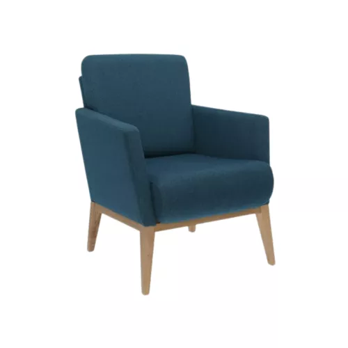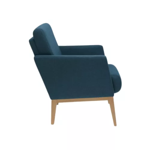 De Bowen fauteuil heeft stevige beukenhouten poten en is volledig gestoffeerd op zitting, rugleuning en armleuningen voor optimaal comfort. Verkrijgbaar in diverse professionele stoffen of kunstleer en verschillende houtkleuren. Perfect voor lounges, lobby’s en horecaruimtes, stijlvol en duurzaam.