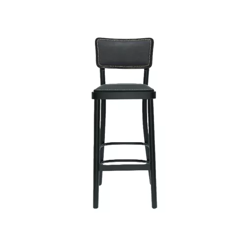 De Bridged BK houten barkruk combineert klassieke elegantie met modern comfort. Hij heeft een massief beukenhouten frame en een houten voetensteun, en een gestoffeerde zitting en rugleuning met decoratieve accenten. Verkrijgbaar in een breed scala aan professionele stoffen of kunstleer en diverse houtbeitskleuren, perfect voor bars en horecagelegenheden.