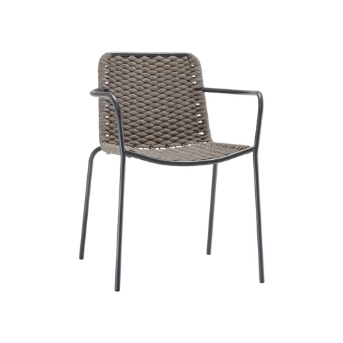 Cruise Lux is een stijlvolle en duurzame buitenstoel. De gegalvaniseerde aluminium structuur in antraciet wordt omhuld met een mix van bruine textileen touw en rubber, wat zorgt voor stevigheid en comfort. Het stapelbare ontwerp is perfect voor terrassen en horecaruimtes. Licht van gewicht, maar stevig gebouwd. Verkoopbaar per 4 stuks per doos.
