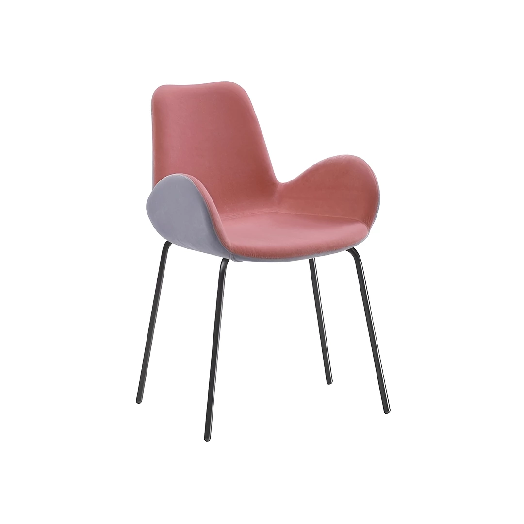 De Dalia PB MT gestoffeerde stoel met armleuningen en lage rugleuning combineert elegantie en functionaliteit. Het metalen onderstel met vier poten, verkrijgbaar in gelakte of verchroomde afwerking, ondersteunt een zacht gestoffeerde zitting. Vervaardigd met hoogwaardige materialen en met oog voor detail, biedt de stoel uitgebreide personalisatiemogelijkheden in stoffen, kunstleer en framekleuren.