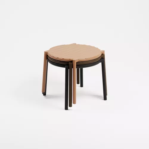 De Doga bijzettafel is een lichtgewicht, monobloc lage tafel, gemaakt van glasvezelhars, met een rond blad en een modern, praktisch design. De stapelbare constructie maakt hem gemakkelijk te verplaatsen en op te bergen. Ontworpen voor horecagelegenheden buiten, is hij gemaakt van uniform gekleurde glasvezelpolypropyleenhars met UV-additieven en een matte afwerking, wat duurzaamheid en eenvoudige hygiëne garandeert.