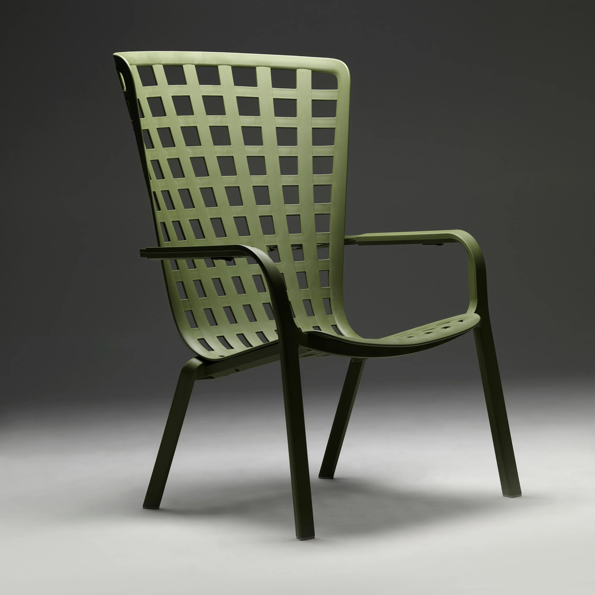 Folio is een stijlvolle relaxfauteuil voor buiten, met een omhullende rugleuning die naadloos overgaat in de royaal verlaagde zitting. Gemaakt van glasvezelhars, is deze stoel voorzien van een geperforeerd vierkant patroon en een matte afwerking, verkrijgbaar in kleuren zoals wit, antraciet, tortora, agave en tabacco. De rugleuning is verstelbaar in twee comfortabele posities, perfect om in alle rust van buitenmomenten te genieten. Bijpassende kussens zijn op bestelling leverbaar, speciaal ontworpen voor buitengebruik in Lino-stof, tegen een meerprijs van ongeveer 40%. De kussens zijn niet afneembaar, zonder rits, 7 cm dik en gevuld met polyurethaanschuim met een dichtheid van 18 kg/m³. Ze worden stevig bevestigd met stoffen banden met klittenband. Kleurvarianten zijn Arctic en Felce, die mooi aansluiten bij de natuurlijke tinten van de stoel. Folio is de perfecte keuze voor wie comfort en elegantie wil combineren op het terras, in de tuin of bij het zwembad.
