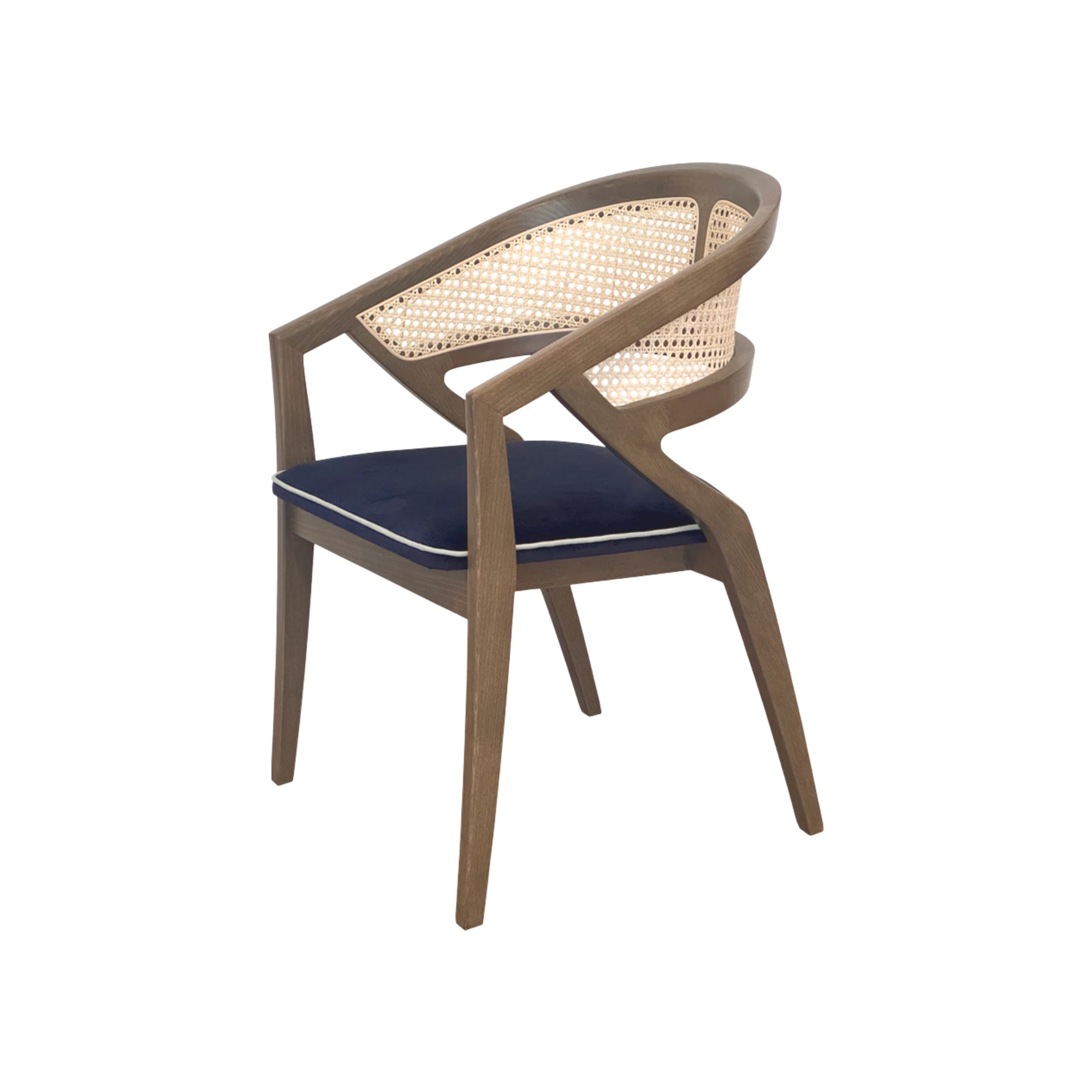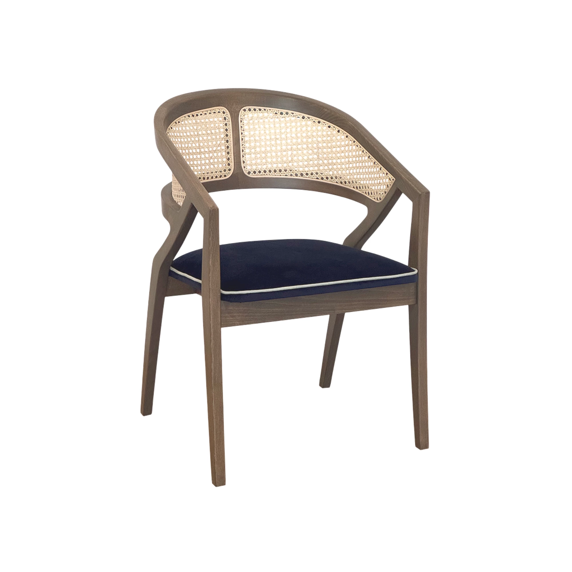 Ervaar verfijnde elegantie met de Freya stoel – een harmonieuze combinatie van traditie en modern design. Met een frame van massief beukenhout, elegante poten en een gevlochten rotan rugleuning, straalt deze stoel warmte en karakter uit. De gestoffeerde zitting met COM-stof en decoratief bieswerk zorgen voor comfort en een luxueuze uitstraling. Freya is perfect geschikt voor restaurants, cafés en andere binnenruimtes in de horeca. Een stijlvolle en duurzame keuze voor wie zijn interieur naar een hoger niveau wil tillen.