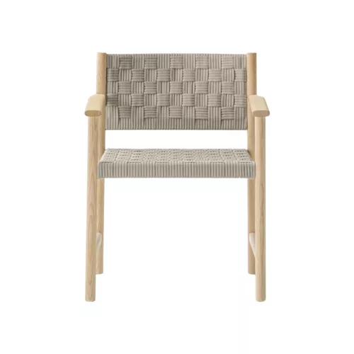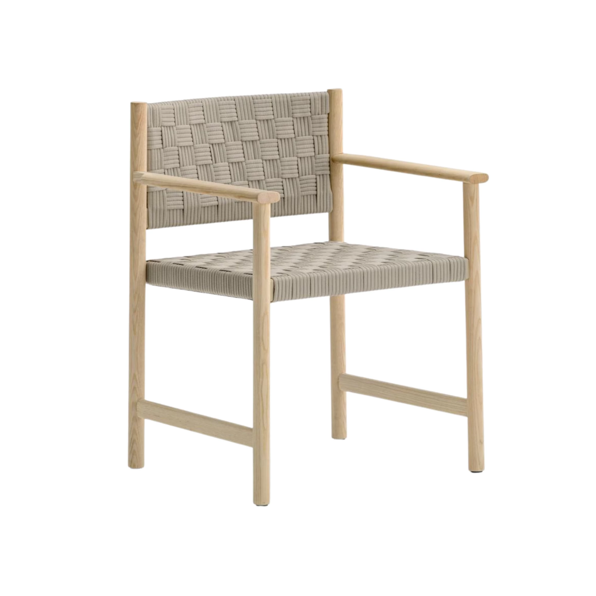 Griante herinterpreteert het concept van geweven zitmeubilair met een verfijnd ontwerp dat traditioneel vakmanschap combineert met moderne, industriële precisie. Deze fauteuil voor binnen heeft een frame van FSC® C114358-gecertificeerd essenhout, wat zowel duurzaamheid als elegantie benadrukt. De cilindrische poten zijn fijn gedraaid, terwijl de ovaalvormige armleuningen sierlijk taps toelopen waar ze de achterpoten raken, wat zorgt voor een vloeiende, organische vorm. Een aluminium frame biedt stabiele ondersteuning voor de zitting. De kenmerkende handgeweven zitting en rugleuning, vervaardigd in Italië van volledig recyclebare polypropyleengarenbanden, hebben een rijke driedimensionale textuur die zorgt voor uitzonderlijk comfort en duurzaamheid. Gemakkelijk te demonteren en prachtig gedetailleerd, Griante belichaamt tijdloos design en verantwoord vakmanschap.