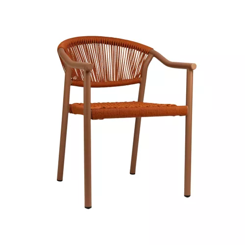 Verkrijgbaar in oranje, groen, eiken/naturel en eiken/bruin, past de stoel in uiteenlopende terrasconcepten. Dankzij het stapelbare ontwerp is opslag eenvoudig en ruimtebesparend.