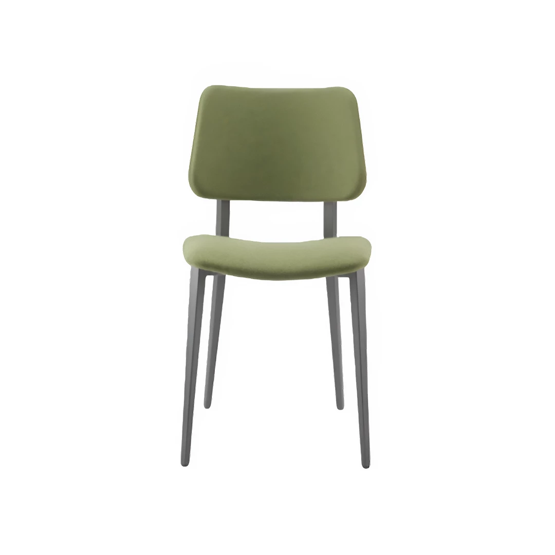 De Joe S M TS stoel combineert eigentijds design met comfort en veelzijdigheid. Met een vierpotig gelakt stalen frame en een gestoffeerde zitting en rugleuning in leer, imitatieleer of stof, kan hij worden aangepast met verschillende materialen of kleuren. Een gefineerde houten rugleuning en diverse frameafwerkingen maken hem ideaal voor horeca-omgevingen.