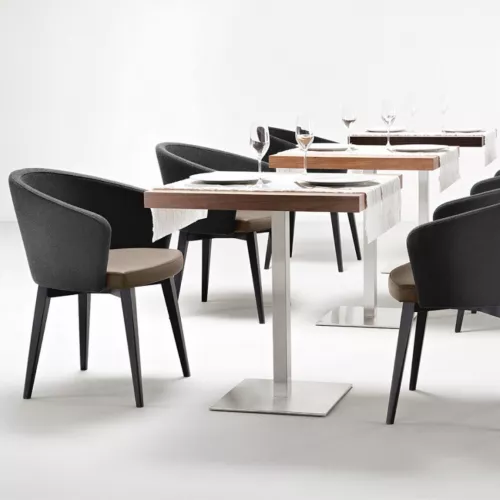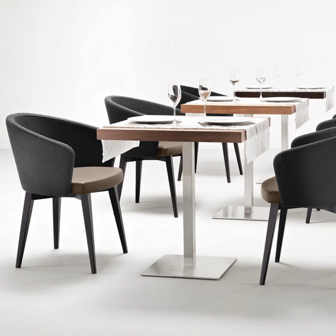 De Kicca 571 heeft beukenhouten poten, die verkrijgbaar zijn in verschillende elegante afwerkingen. Kies uit honingbeuken, kastanjebeuren, grijsbeuken, donkerbruinbeuken of zwartbeuken om het ontwerp perfect aan te passen. Daarnaast bieden we beukenhout aan, gebeitst volgens een monster, zodat uw specifieke eisen voor elk maatwerkproject worden vervuld. De minimale bestelhoeveelheid voor deze opties is 10 stuks, waardoor het ideaal is voor grotere bestellingen of op maat gemaakte ontwerpen. Met vakmanschap en een verscheidenheid aan afwerkingen is de Kicca 571 de perfecte combinatie van duurzaamheid en stijl voor elk interieur.