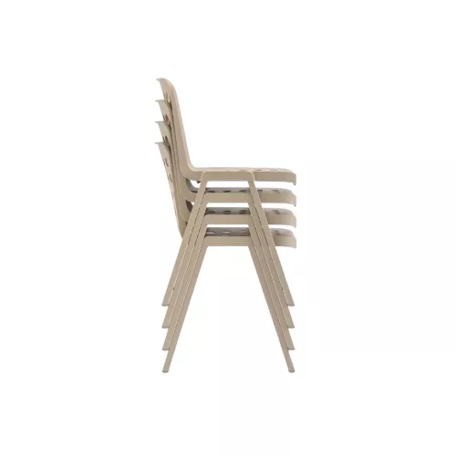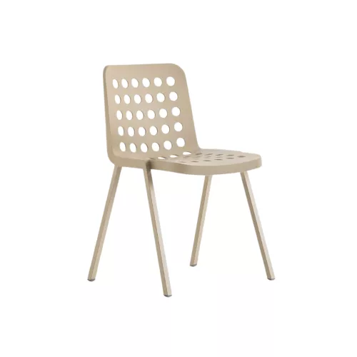 De Koi Booki 370 is een moderne stoel die zowel duurzaamheid als stijl combineert. De stoel heeft een spuitgegoten polypropyleen schaal en is beschikbaar in verschillende kleuren, waaronder wit, zwart, blauw, zand en oranje. De schaal is versterkt met glasvezel voor extra sterkte en is antistatisch en UV-bestendig, wat zorgt voor een lange levensduur, zowel binnen als buiten. De basis van de stoel bestaat uit een gegoten aluminium frame met geëxtrudeerde aluminium poten, die uitstekende stabiliteit en ondersteuning bieden. Het geslagen oppervlak geeft de stoel een unieke textuur, waardoor het niet alleen functioneel is, maar ook esthetisch aantrekkelijk.