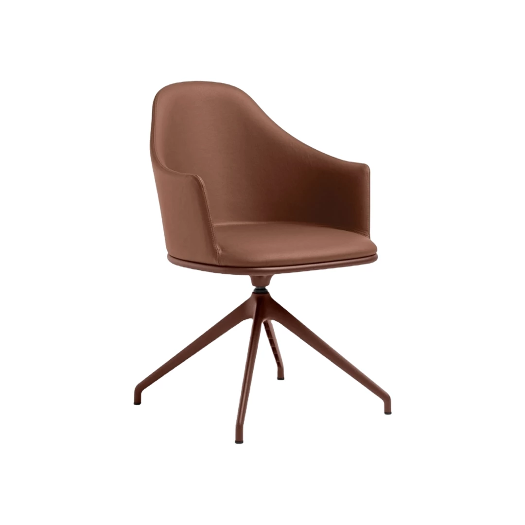 De Lea P GX is een gestoffeerde stoel met armleuningen, ontworpen voor veelzijdigheid en verfijning. De vierspaaks metalen onderstel zorgt voor stabiliteit en stijl, terwijl de zitting en rugleuning bekleed kunnen worden met stof, imitatieleer of leer. Perfect voor moderne eetkamers, kantoren of horecagelegenheden die comfort en elegantie zoeken.