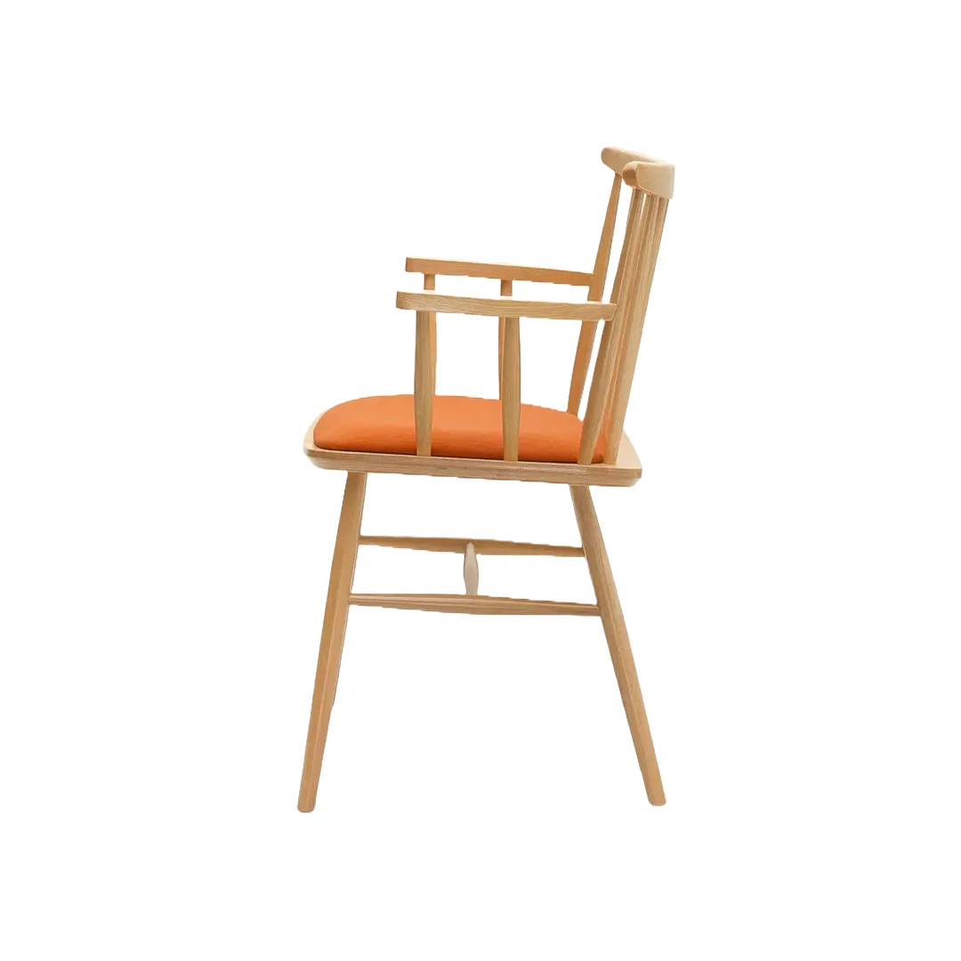 De Louisiana A UPH stoel met armleuningen combineert traditioneel design met een trendy vintage stijl. Het geprofileerde frame, de slanke, met de hand geslepen rugleuningen en de gebogen dwarsbalk complementeren een unieke hoefijzervormige zitting. De stoel is gemaakt van beukenhout en heeft een gestoffeerde zitting en houten rugleuning, verkrijgbaar in diverse houtkleuren en stoffen of kunstleer – perfect voor horeca-interieurs.