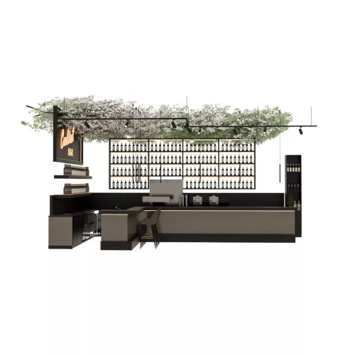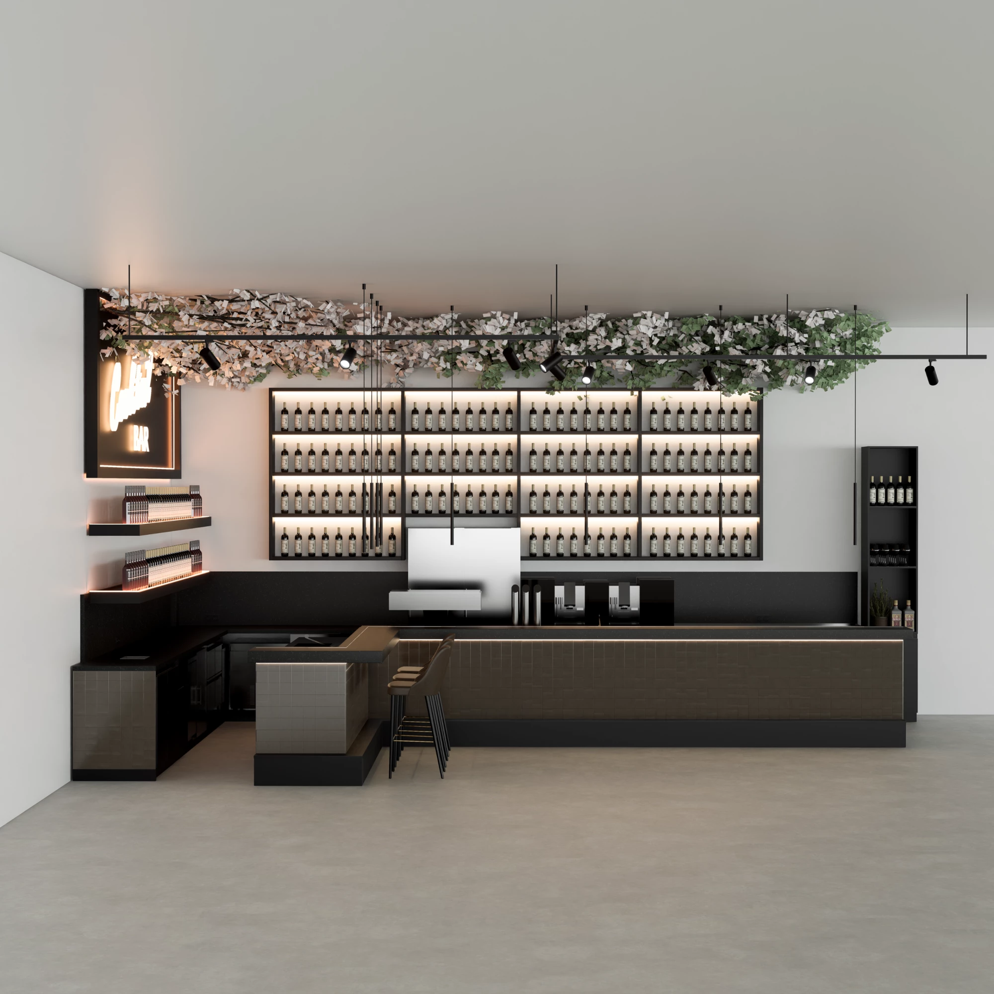 Een eigentijds, modern barconcept op maat, ontworpen voor stijlvolle cafés en restaurants. Het volledige ontwerp is beschikbaar in 3D , wat een duidelijke en meeslepende preview van het eindresultaat biedt.