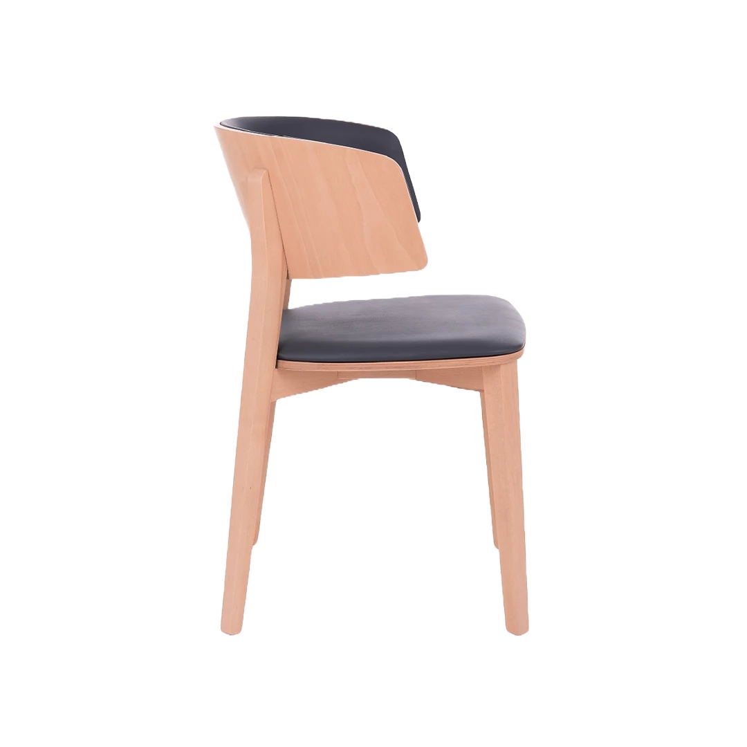 Deze stoel is vervaardigd met een stevig frame van beukenhout, afgewerkt met een beschermende polyurethaanlak voor langdurige kwaliteit. De vulling van hoogwaardig schuim met hoge dichtheid biedt langdurig comfort, zelfs bij intensief gebruik. Het product kan volledig worden gepersonaliseerd met een ruime keuze aan professionele stoffen.