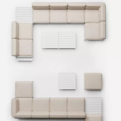 De Maximo Elemento Centrale is het middenelement van een modulair outdoor loungesysteem. Gemaakt van UV-bestendig, geregenereerd glasvezel-polypropyleen met een schroefloos bevestigingssysteem voor rug- en armleuningen. De kussens zijn afneembaar en voorzien van een rits, wat zorgt voor comfort en onderhoudsgemak. Perfect voor horecaterrassen en loungezones.