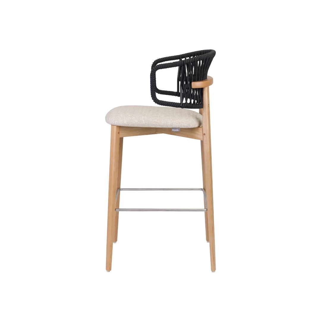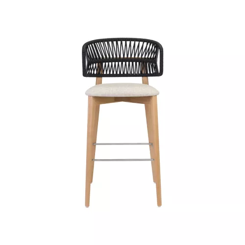 De Nebulas BK is een hoogwaardige houten barkruk, speciaal ontworpen voor horecagelegenheden. Het essenhouten frame is verkrijgbaar in verschillende beitsafwerkingen en is voorzien van een duurzame metalen voetensteun. De zitting is bekleed met professionele stoffen, terwijl de handgeweven rugleuning met corduroy een unieke visuele textuur toevoegt. Ideaal voor stijlvolle bars, lounges en horeca-interieurs.