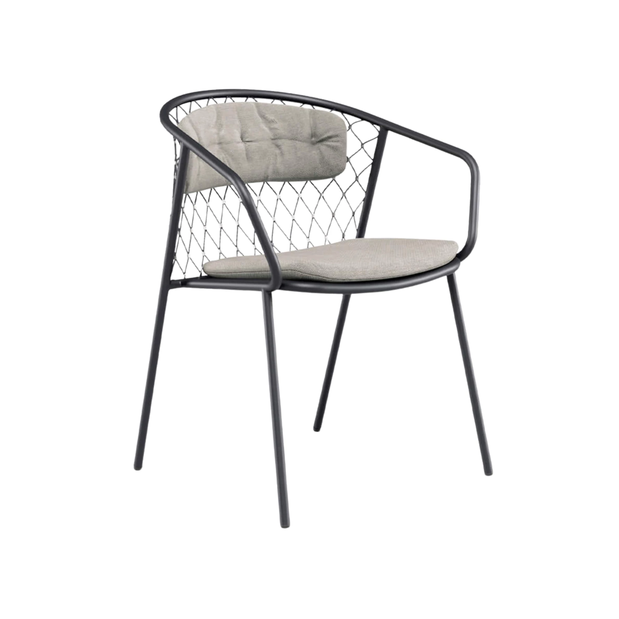 De Nef A stoel is de ideale keuze voor chique terrasdining in restaurants, cafés en bistro’s. Gemaakt van een robuust aluminium frame met roestvrijstalen en synthetisch touw details, is deze stoel perfect voor buitengebruik, en biedt hij zowel comfort als stijl. De zitkussen en rugkussen zorgen voor extra comfort, waardoor hij ideaal is voor buitenomgevingen waar gasten langer zitten. Met armleuningen voor extra ontspanning is de Nef A stoel zowel functioneel als stijlvol voor elke buitenruimte. Het moderne ontwerp maakt het een veelzijdige keuze voor elke eigentijdse eetomgeving, terwijl de materialen zorgen voor langdurige prestaties, zelfs in drukbezochte gebieden. Of u nu een caféterras of een restaurantterras inricht, de Nef A biedt zowel elegantie als duurzaamheid.