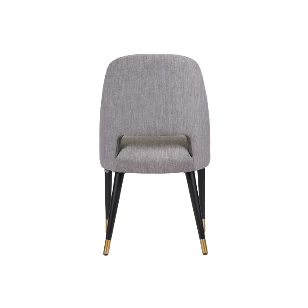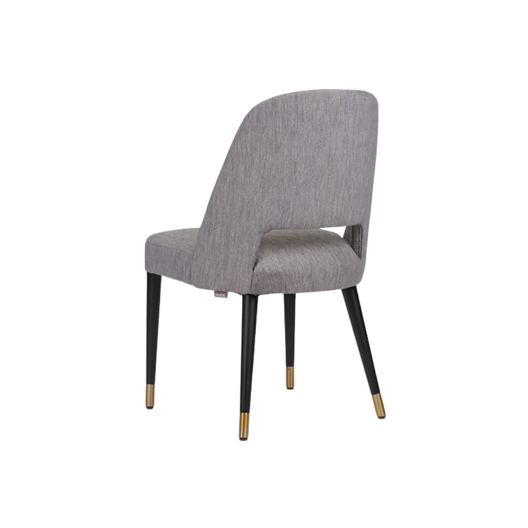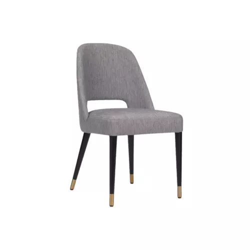Nibirius S is een elegante gestoffeerde stoel met een stevig beukenhouten frame en luxe gouden doppen op de poten. Perfect voor stijlvolle interieurs in horeca. De stofconsumptie bedraagt 1,32 meter en kan worden afgewerkt met diverse professionele stoffen.