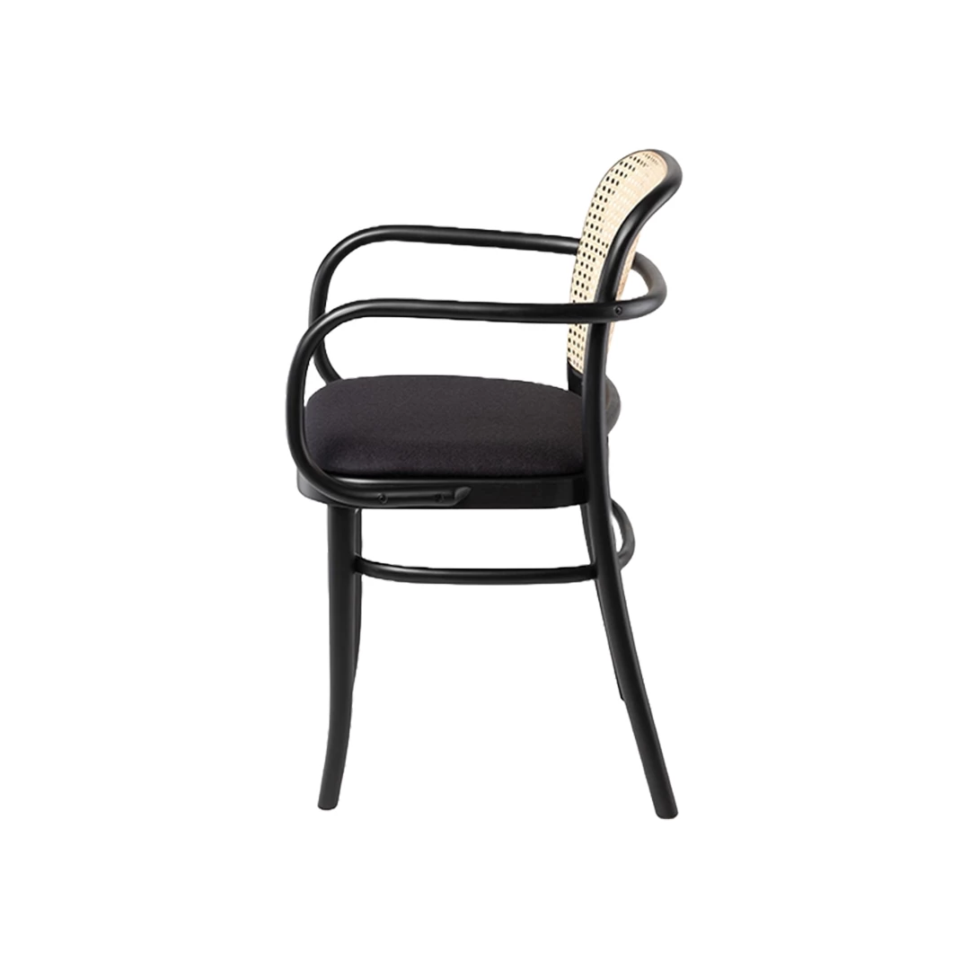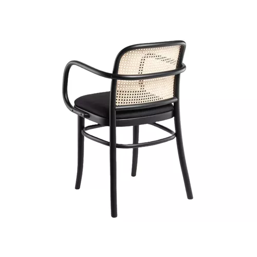 De Pavol A FS houten stoel met armleuningen combineert een klassiek design uit de jaren 30 met modern comfort. Het beukenhouten frame ondersteunt een gestoffeerde zitting en een elegante rieten rugleuning, verkrijgbaar in een breed scala aan stoffen of kunstleer. Verkrijgbaar in diverse houtbeitskleuren, perfect voor stijlvolle en veelzijdige horeca-interieurs.