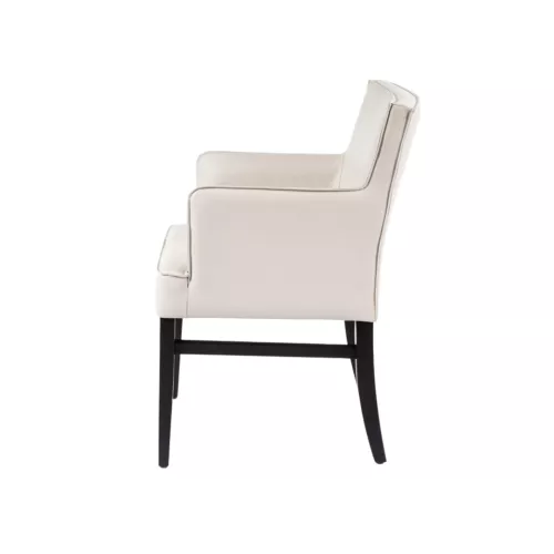 Elegante fauteuil met strakke lijnen en geïntegreerde armleuningen, perfect voor horecagebruik. De zitting en rugleuning zijn volledig gestoffeerd voor extra comfort, terwijl de stevige basis geschikt is voor intensief gebruik.