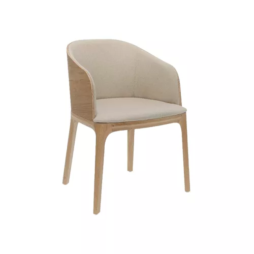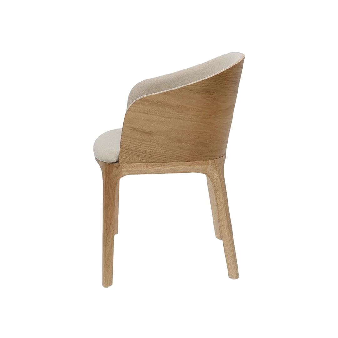 De Rainbow A gestoffeerde stoel met armleuningen combineert klassieke elegantie met modern design. De eenvoudige vorm en de rugleuning van zichtbaar natuurlijk hout benadrukken de schoonheid van vakmanschap. Gemaakt met een duurzaam beukenhouten frame en een subtiele multiplex structuur, biedt hij comfort en stijl. Verkrijgbaar in diverse houtbeitsen en bekledingsopties, perfect voor horecagelegenheden.