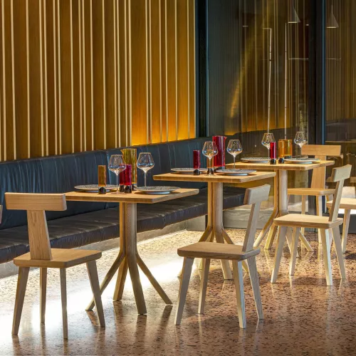 De Salzburg stoel is vervaardigd uit natuurlijk beukenhout en biedt een strak, veelzijdig ontwerp. Verkrijgbaar in zwart of gelakte afwerking, met een T-vormige rugleuning die mobiliteit en comfort bevordert. Ideaal voor horeca en diverse interieurstijlen.