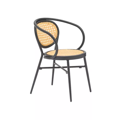Deze moderne stoel combineert een stevig aluminium frame met een stijlvolle rattan afwerking. Lichtgewicht, weerbestendig en geschikt voor binnen- en buitengebruik. Ideaal voor terrassen, cafés of lounges met een eigentijdse uitstraling.