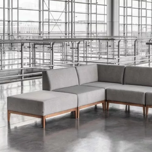 Sequence Middle is een veelzijdig modulair gestoffeerd element met een stevig beukenhouten frame. Het creëert verschillende zitopstellingen, van een losse fauteuil tot een uitgebreide unit. Geschikt voor horeca, met duurzame professionele stoffen of kunstleer voor stijl en comfort.