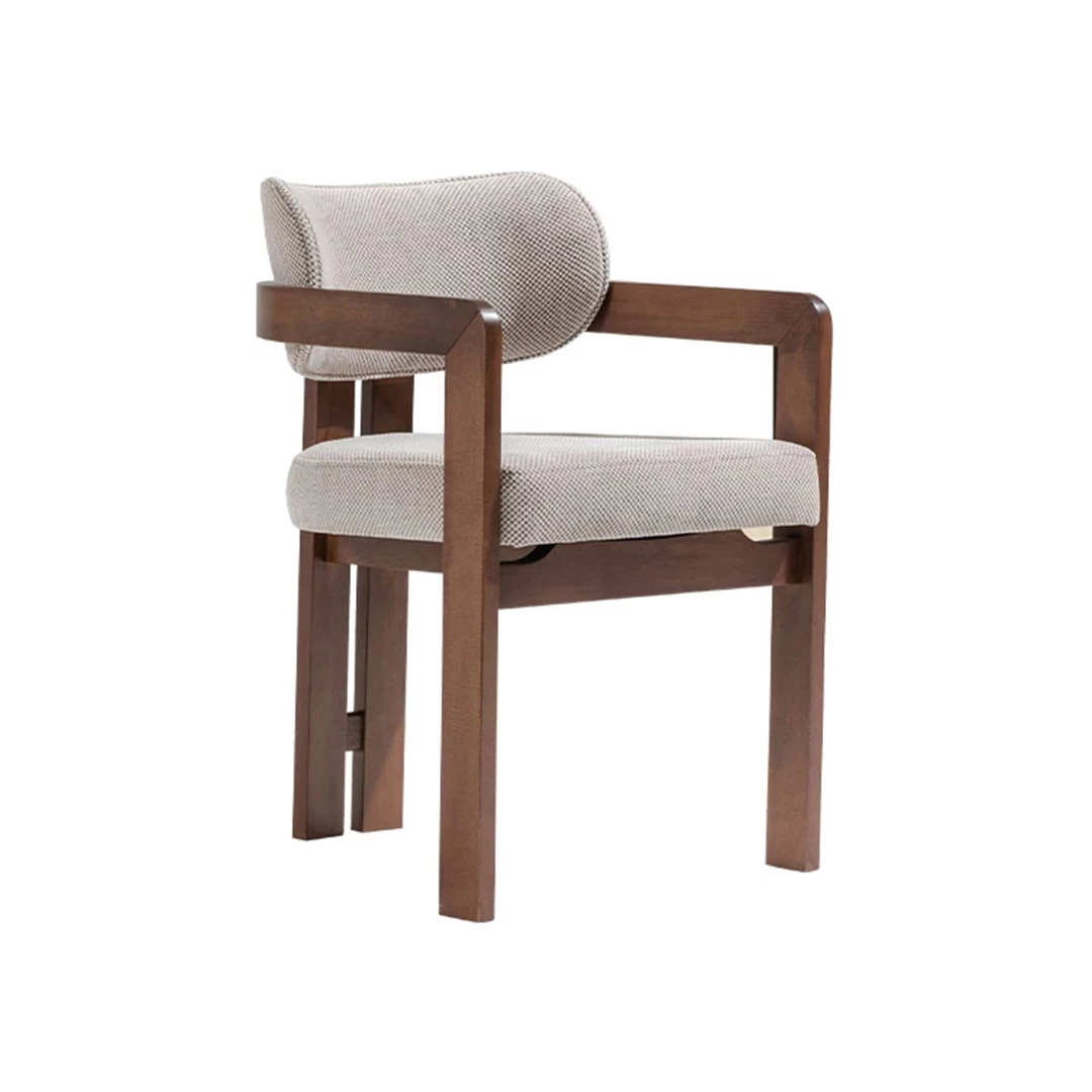 De Siena stoel combineert modern design met comfort en duurzaamheid. Het houten frame en de armleuningen zorgen voor stabiliteit en stijl, terwijl de gestoffeerde zitting en rugleuning zorgen voor een comfortabele zitervaring. Verkrijgbaar in een breed scala aan professionele stoffen, is de Siena perfect voor restaurants, hotels en andere horecagelegenheden die functionele elegantie zoeken.