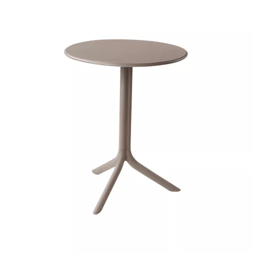 Spritz is een moderne buitentafel, ontworpen voor gebruik in de horeca, met een centrale kolom en een onderstel met drie poten. Hij is gemaakt van uniform gekleurde glasvezelpolypropyleenharsen met UV-additieven, is demontabel, duurzaam en verkrijgbaar in verschillende kleurvarianten. De matte afwerking en strakke lijnen passen bij veel horecagelegenheden en designstijlen.