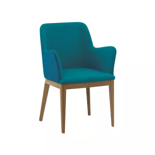 De Tabby A is een gestoffeerde stoel met armleuningen, speciaal ontworpen voor horecagebruik. Het stevige beukenhouten frame is verkrijgbaar in verschillende beitskleuren. De bekleding is beschikbaar in duurzame stoffen of kunstleer, perfect voor intensief gebruik en uiteenlopende interieurstijlen binnen horecaomgevingen.
