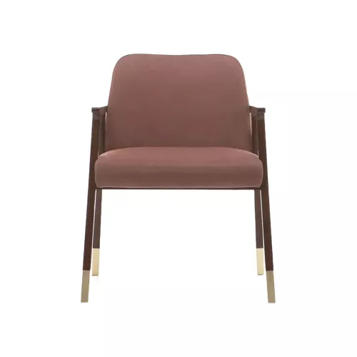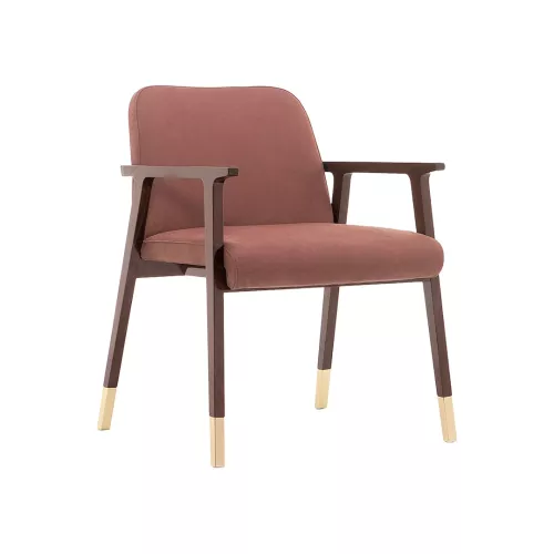 De Tenuo A stoel combineert tijdloze elegantie met modern comfort, geïnspireerd door 20e-eeuwse designmeesters. Met armleuningen, een massief beukenhouten frame en verfijnde messing doppen straalt hij verfijning uit. De gestoffeerde zitting en rugleuning, verkrijgbaar in diverse stoffen of kunstleer, maken hem ideaal voor stijlvolle horeca-interieurs.