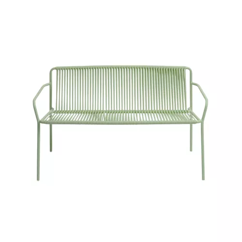 Geïnspireerd door de gastvrije charme van het buitendesign uit het midden van de vorige eeuw, biedt deze tweezitsbank een eigentijdse herinterpretatie van klassieke terrasmeubelen. De stapelbare constructie is opgebouwd uit een stalen buisframe van Ø20 mm met een duurzame poedercoating voor buitengebruik. De zitting en rugleuning zijn gemaakt van verticaal geweven geëxtrudeerd PVC met een nylon kern, wat zorgt voor flexibiliteit, weerbestendigheid en langdurig comfort. Speciaal ontworpen voor buitenomgevingen, ideaal voor terrassen, tuinen, zwembaden en horecagelegenheden.