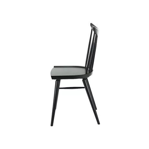 De Trieste WS houten stoel biedt klassieke elegantie en verfijnd comfort. De hoefijzervormige fineerzitting, de gebogen rugleuning met slanke, met de hand geslepen sporten en de taps toelopende poten met convergerende steunen creëren een onderscheidend, sierlijk silhouet. Vervaardigd van beukenhout en verkrijgbaar in diverse beitskleuren, combineert hij tijdloze stijl met duurzame functionaliteit.