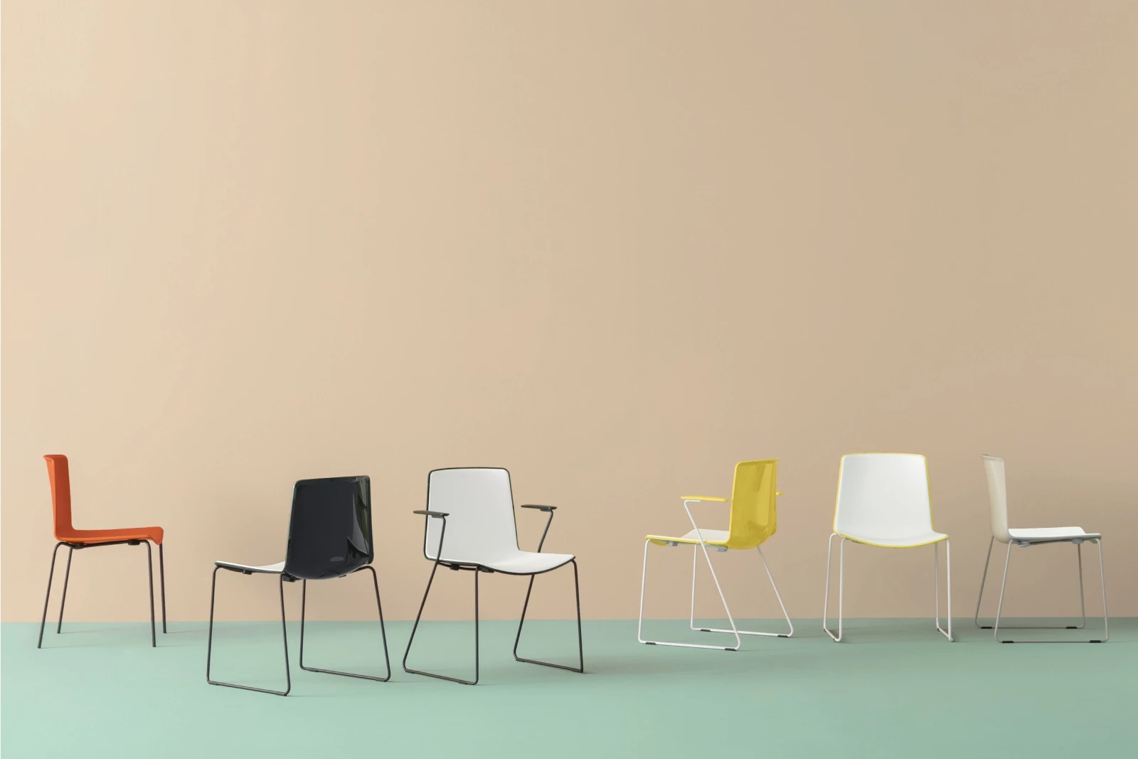 De Tweet 897 stoel combineert rationeel design met duurzame prestaties. De dubbel geïnjecteerde polypropyleen kuip rust op een Ø11 mm stalen sledestraalframe en is antistatisch en UV-bestendig. Stapelbaar tot 20 stuks, leverbaar in uni- of bicolor-uitvoering en diverse frameafwerkingen.