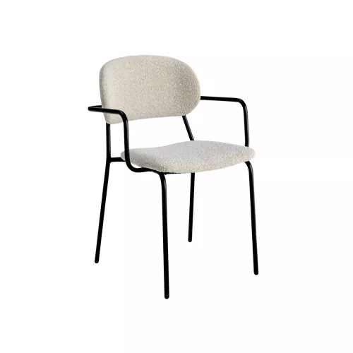 De Valesta A stoel is ontworpen voor horeca-ruimtes die betrouwbaarheid en comfort vereisen. Met een gestoffeerde zitting en rugleuning, samen met stevige metalen armleuningen, biedt hij zowel ondersteuning als functionaliteit. De bekleding is beschikbaar in professionele stoffen of kunstleer. Het metalen frame met poedercoating garandeert duurzaamheid. Stapelbaar voor efficiënt ruimtegebruik.
