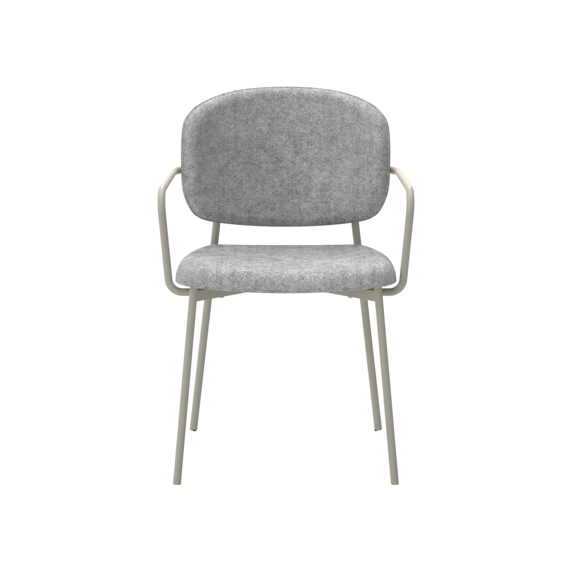 Wround A is een stoel met armleuningen en een stevig stalen frame, leverbaar in standaard- of optionele RAL-kleuren. De zitting en rug zijn gestoffeerd en beschikbaar in professionele stoffen of kunstleer. Het zachte, frisse design geeft elk horecaconcept karakter en stijl.