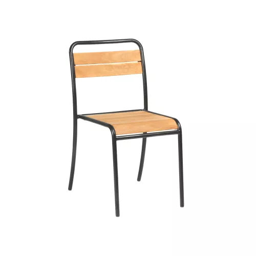 Deze stijlvolle buiten- en terrasstoel combineert een stevig metalen frame met de warme uitstraling van kastanjehout, wat zorgt voor een perfecte mix van stevigheid en elegantie. De constructie is speciaal ontworpen voor buitengebruik, waardoor hij ideaal is voor horecaterrassen, cafés en buitenruimtes. De stoel is verkrijgbaar in een breed scala aan RAL-kleuren, waardoor hij eenvoudig afgestemd kan worden op elk interieurconcept of merkstijl. Een duurzame, weerbestendige keuze met een modern karakter voor professioneel gebruik in de buitenlucht.