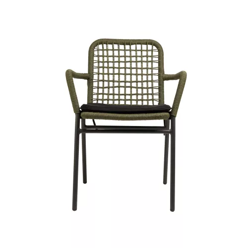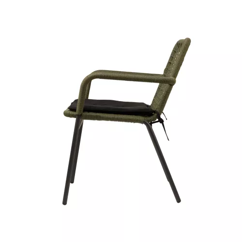De Amellie terrasstoel is een stijlvolle en functionele keuze voor intensief gebruik op horecaterrassen en in buitenruimtes van cafés en restaurants. Met een lichtgewicht aluminium frame en een antraciet poedercoating combineert hij een strakke uitstraling met weerbestendige duurzaamheid. De UV-bestendige, PE-gedraaide rotan afwerking geeft de stoel een warme, natuurlijke uitstraling en behoudt zijn kleur bij blootstelling aan zonlicht. Voor extra comfort wordt een zwart kussen meegeleverd. De Amellie is stapelbaar, wat hem ideaal maakt voor flexibele opstellingen en efficiënte opslag. Verkrijgbaar in drie verfijnde kleurcombinaties—Charcoal/Natural, Charcoal/Charcoal en Charcoal/Olive—past deze stoel perfect in zowel moderne als rustieke terrasomgevingen, en biedt hij een perfecte balans tussen comfort en uitstraling.