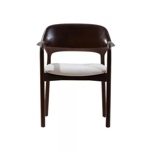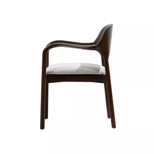 De Arven stoel combineert tijdloos design met duurzaam comfort. Het houten frame en de rugleuning worden aangevuld door een zacht gestoffeerde zitting, terwijl de ronde lijnen van de armleuningen een onderscheidende, elegante uitstraling creëren. Verkrijgbaar in een breed scala aan professionele stoffen, is Arven ideaal voor horecagelegenheden die op zoek zijn naar stijl en duurzaamheid.
