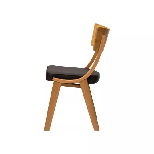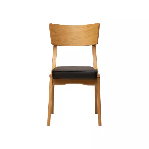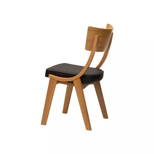 Deze stijlvolle stoel is vervaardigd uit stevig beukenhout en afgewerkt met een hoogwaardige polyurethaanlak, wat zorgt voor een duurzame en elegante uitstraling. Verkrijgbaar in diverse houtkleuren, passend bij uiteenlopende interieurs. De zitting kan worden bekleed met een brede selectie professionele stoffen of echt leer, waardoor het product volledig aanpasbaar is voor horeca, kantoren of woonruimtes.